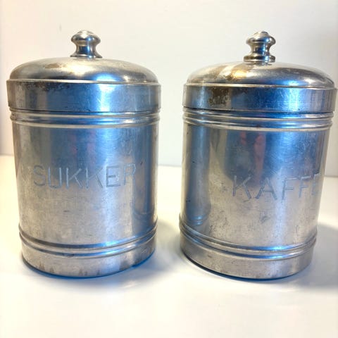 2 antikke metalbeholdere. De er over 100 år gamle.