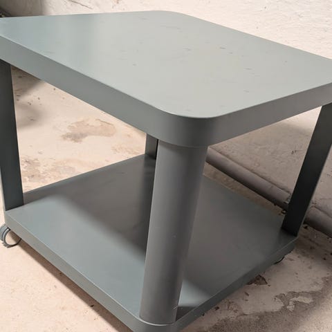 Kvadratisk bord på hjul. IKEA nypris 319 kr.