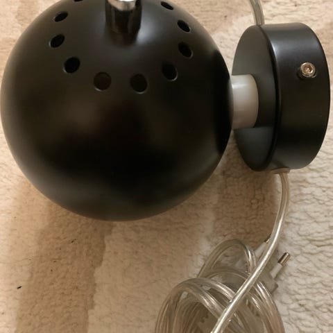 Helt ny! Dette er en væglampe fra Frandsen, model 'Ball', designet af Benny Frandsen. Den er i en mat mørkegrå farve og har en dimension på 16x12 cm. Lampen kommer med en ledning og stikkontakt til tilslutning. Den anbefalede pære er en LED E14 på 2W, og lampen kan tage op til 30W. Produktet er i original emballage.