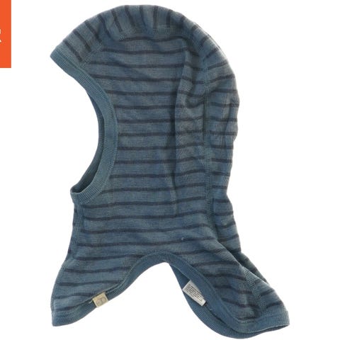 Elefanthue til børn i størrelse 92, lavet af mørkegråt stof. Designet til at holde barnets hoved og hals varm. Stoffet har en blød og strækbar kvalitet, hvilket gør den komfortabel at bære. merino uld