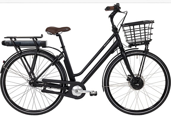 Damemodellen har lav indstigning for nem af- og påstigning. Cyklen leveres med lukket kædekasse, frakkeskåner og støtteben.