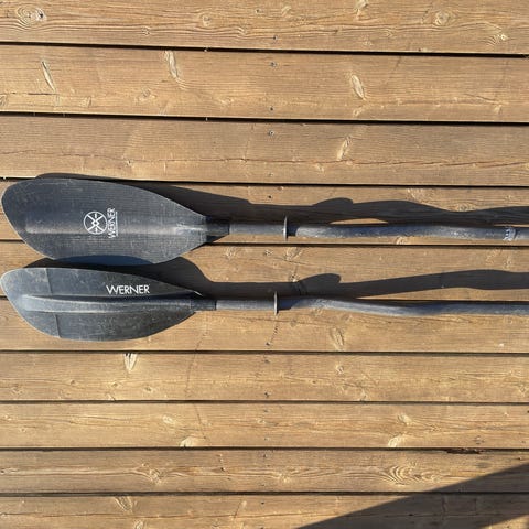 Aqua-Bound todelt kajakpagaj i sort Carbon. 210 cm. Pagajen samles med et kliksystem og er drejbar/skivbar +/- 60 grader. Bladene er aflange og symmetriske, velegnet til almindelig tur- og fritidsroning i kajak. Skaftet er lige og udført i et let kulfiber materiale. Vægt kun 800 gram. Nypris 2900.
