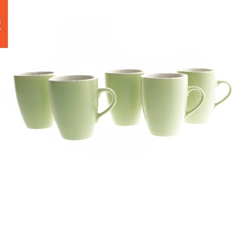 Et sæt med fire keramiske krus, to gule og to blå, som hver har en højde på 11 cm. Krusene har en klassisk form med en rund hank, der gør dem nemme at holde. Indvendigt har krusene en mørkere nuance af blå og rød farve, der giver en fin kontrast til deres ydre farve.