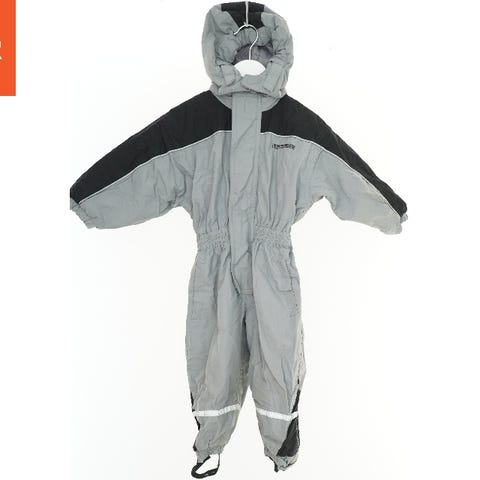 Heldragt med hætte til småbørn i lyserød farve. Dragten har lynlås foran og ribkantede manchetter både ved hænder og fødder med striber i en lidt mørkere lyserød nuance.