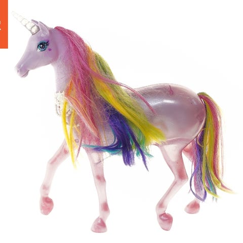 Den har en overordnet lyserød farve med lyseblå og pink pels på halen og manken. Den har skinnende sølvfarvede hove og et horn på panden.