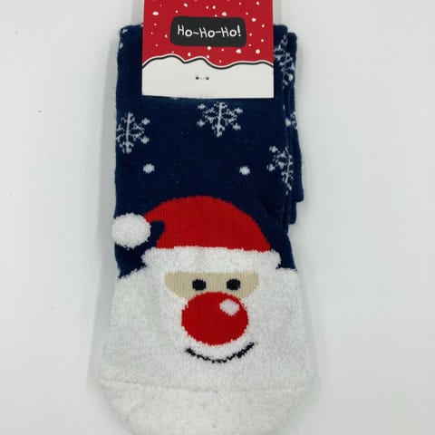 Strømpebukser, Nissestrømpebukser, Nissepige, str. Onesize, Rød og hvid, Ubrugt, Selvsiddende nylonstrømper til udklædning som nissepige. Med pels og bjælder.