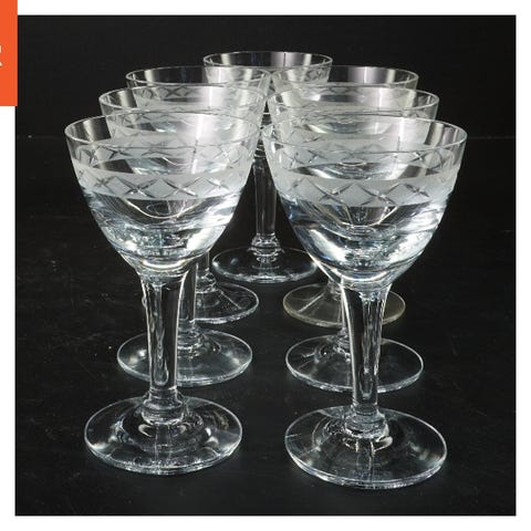 Sæt af glas med guldkanter (str. 4 styk. ø. 7 cm længde. 11,5 cm)