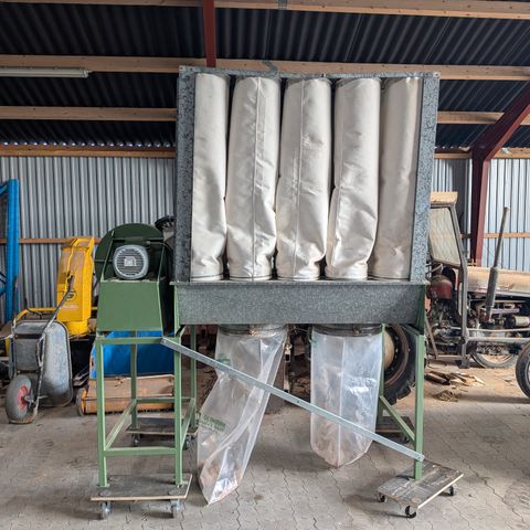 JET JCDC-3 Cyclone Dust Collector spånsuger til udsugning af støv og spåner fra træbearbejdningsmaskiner. Cyklon-udsugeren er 3-faset, 400V, 50Hz, 5A, med motoreffekt 2,25 kW. Luftmængden er opgivet til 2540 m³/t ved et undertryk på 1655 Pa. Maskinen har en hovedtilslutning på Ø203 mm samt tre tilslutninger på Ø100 mm til udsugningsslanger. Vægten er 110 kg. Enheden er udstyret med filterpatron, opsamlingsbeholder og betjeningspanel med nødstop. Velegnet til faste installationer i værksteder, hvor der er behov for central spån- og støvudsugning.