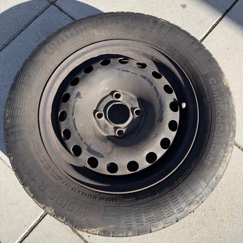 4 dunlop sommerdæk på stålfælge, slidmønster ca 5 mm. Har været brugt på en Skoda Oktavia.