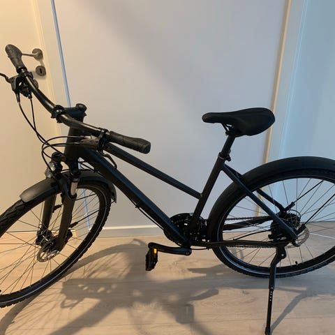 Cube hybridcykel til herre med 56 cm stel og 28"/700c hjul. Cyklen har et let stel og smalle dæk, der egner sig til både bykørsel og pendling. Udstyret med racerstyr-inspireret gear- og kranksetup samt fælgbremser. Velegnet til voksne ryttere, der ønsker en kombination af komfort og effektiv kørsel på asfalt og faste underlag. Har haft cykel fra ny, købt i 2012 til 12.000kr har sidste år fået skiftet kassette bag skifter kæde inder tandhjul og lige får skiftet helt nye dæk der ikk blevet kørt med. Den gamle ultra gear bagskifter følger med, skal bare renoveres.