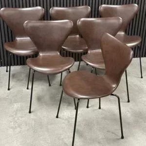 Arne Jacobsen syver stole nypolstrede med sort stel pris 6 stk