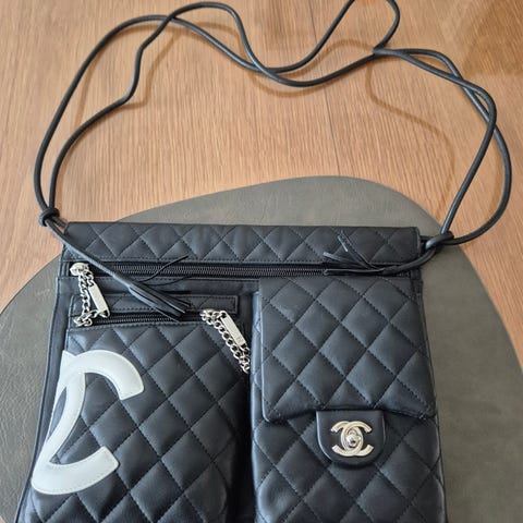 CHANEL LIGNE CAMBON POCHETTE SKULDERTASKE - HVID/SORT