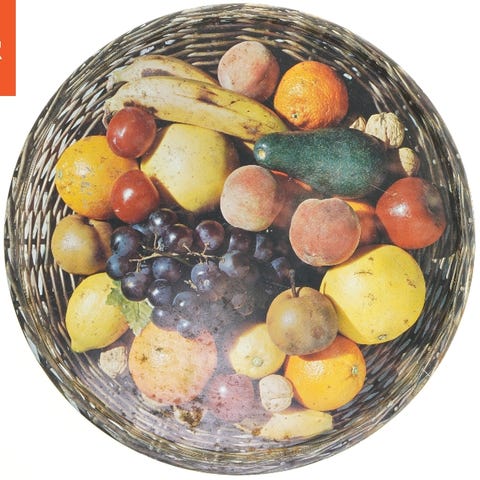 Rund bordskåner m frugter, Rundt bordskåner med frugter