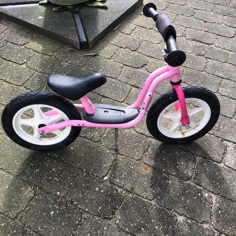 Rocky løbecykel med 12" hjul i turkis farve. Cyklen har sort saddel, sorte håndtag og ringeklokke på styret. Velegnet som begynderløbecykel til mindre børn, der skal øve balance og styreteknik. Robust stel og luftfyldte dæk for stabil kørsel på fliser og asfalt.