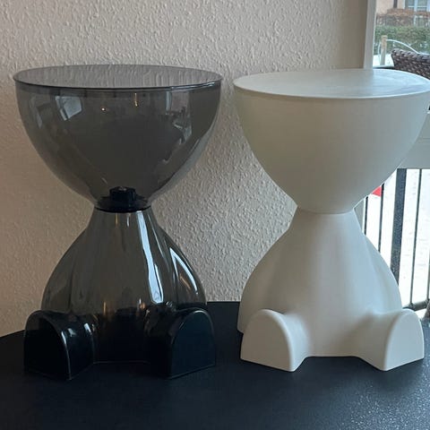 To urtepotteskjulere fra Gejst sælges. Matteret glas og grå potte.