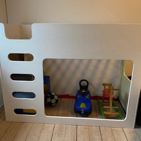 Sengen er bygget til vores mindste, som har brugt den til leg og hule.