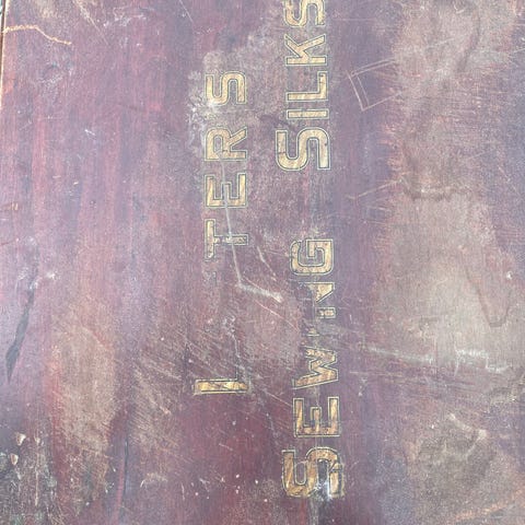 Forsynet med fire udtræksskuffer med metalgreb. Egnet til opbevaring af mindre genstande som sytilbehør, kontorartikler eller andre småting. Vintage præg med original mærkning fra Freiburg i B.