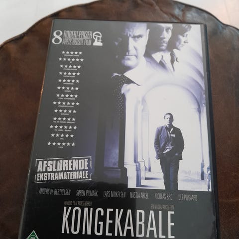 Kongekabale DVD-film. Dansk spillefilm udgivet på DVD med dansk tale. Forsiden angiver blandt andet medvirkende skuespillere og at udgaven indeholder afslørende ekstramateriale. Egnet til afspilning på standard DVD-afspillere, med aldersmærkning som vist på omslaget.
