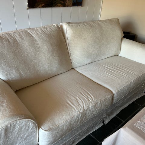 Alt betræk kan tages af og de er nyvaskede og fra dyre og røgfrit hjem. Siddedybden er 58 cm
