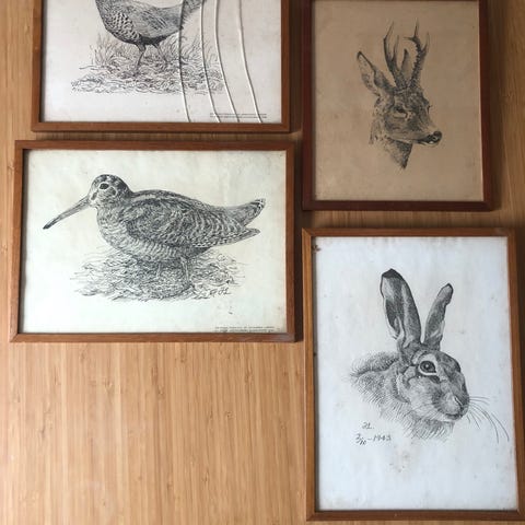 Johannes Larsen bog med natur- og fugletegninger. Bogen indeholder sort-hvide illustrationer af fugle og andre dyr i landskaber samt ledsagende dansk tekst. Velegnet til læsere med interesse for dansk natur, kunst og illustrationer. Trykt i hæftet/indbundet udgave med grøn forside med fuglemotiv.