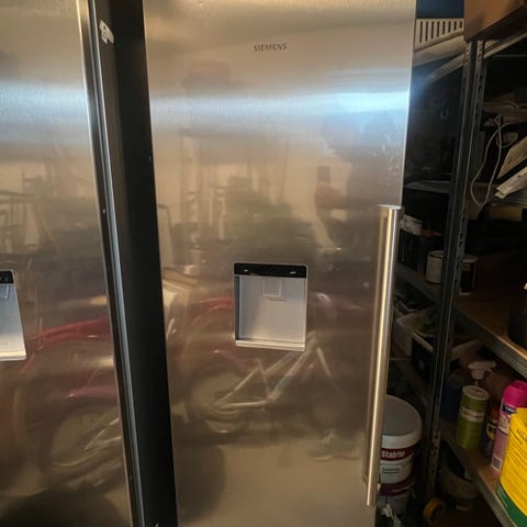 LG side-by-side køleskab i rustfrit stål. Modellen har to lodrette døre med separat køle- og frysedel. I køledøren er der is- og vanddispenser på fronten. Designet er fritstående med lange, lodrette håndtag og front i rustfrit stål, som passer ind i de fleste køkkener. Velegnet til husholdninger med behov for god opbevaringsplads i både køle- og frysesektion.