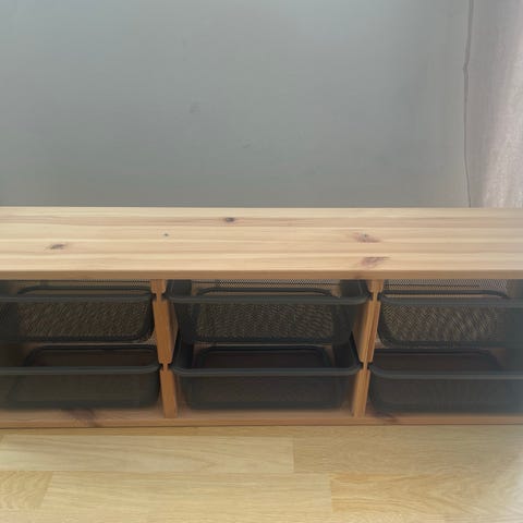 Trofast i massivt fyr med kasser - god stand