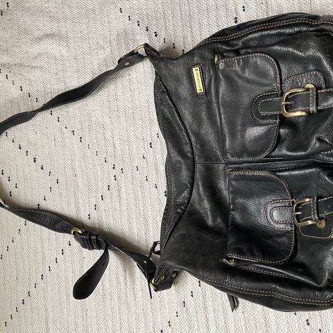 Storksak pusletaske i lysebrunt læder.