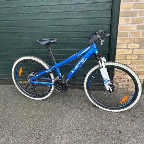 Børnecykel med 24" hjul i sort. Cyklen har lige styr, fodbremse bagtil og håndbremse foran. Udstyret med bagagebærer, skærme og reflekser. Egnet til større børn, der er vokset ud af mindre hjulstørrelser, og kan bruges til både hverdagscykling og fritidsture.