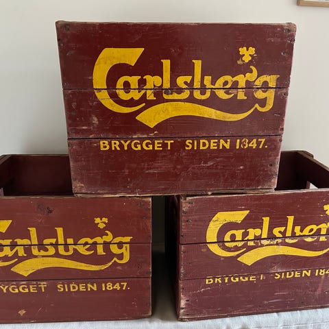 Carlsberg ølkasser der er malet undtagen i bund L:42cm B:26cm H:21cm