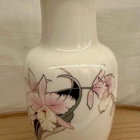 Dette er en japansk blå og hvid porcelænspotte/vase. Brugen af koboltfarven på denne hattestander/vase er smuk. De mørke og lyse blå farver giver dybde til bjergscenen. Billederne viser brugen af underglasurblå farver. Der er en kunstners eller firmas signatur i bunden. Dette er fra slutningen af 1800-tallet til begyndelsen af 1900-tallet. Vasen/hattestanderen er 28 cm høj og har en diameter på 10 cm. Vasen er i fremragende stand.