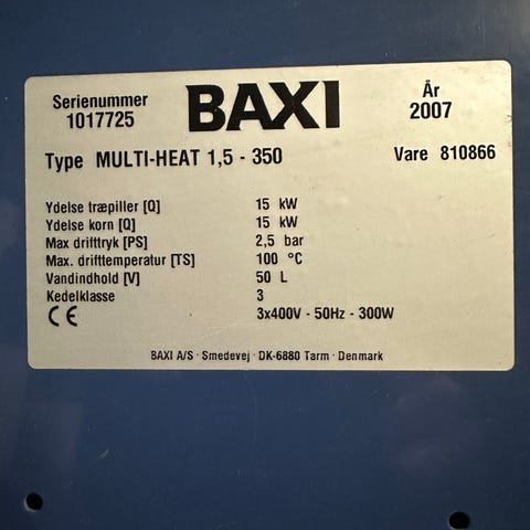 Baxi Bonus 30 træpillefyr kan konfigureres om til et træ fyr og dele medfølger ubrugte.