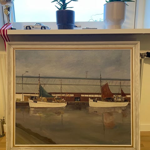 Bjørg Illum - Maleri havnemotiv i ramme