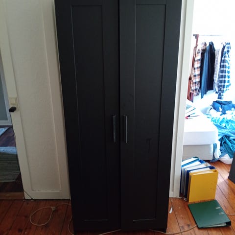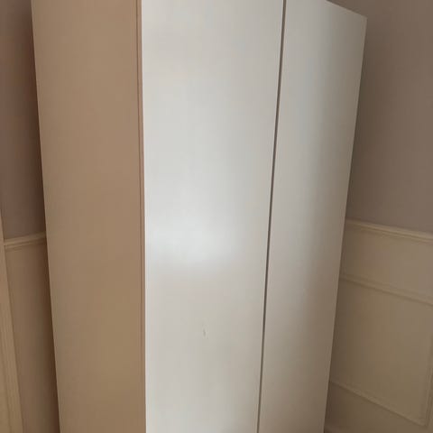 Fint klædeskab. 62 cm dyb, 220 cm høj, 202 cm bred. Skilles ad af køber. Afhentes på Husum Torv på 2. Sal. Lågerne kører som de skal og klædeskabet har ingen skader. Tøres over med en våd klud.