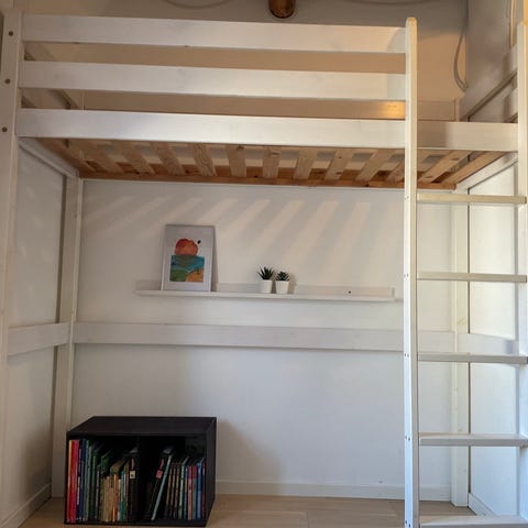 Højseng med bordplade og hylder