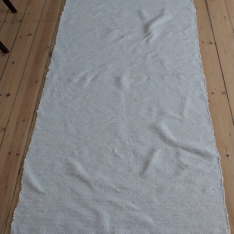 Woodnotes New York tæppe 3x2,5 m i natur og blå strib sælges for 3000kr. Tæppet har lidt brugs spor( fremgår af billeder).