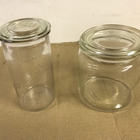 12 stk. 1 1/2 l, 6 stk 1 l. Alle med glaslåg. Holmegaard, Kastrup og Danaglas. Sælges stykvis, men også samlet til en skarp pris.