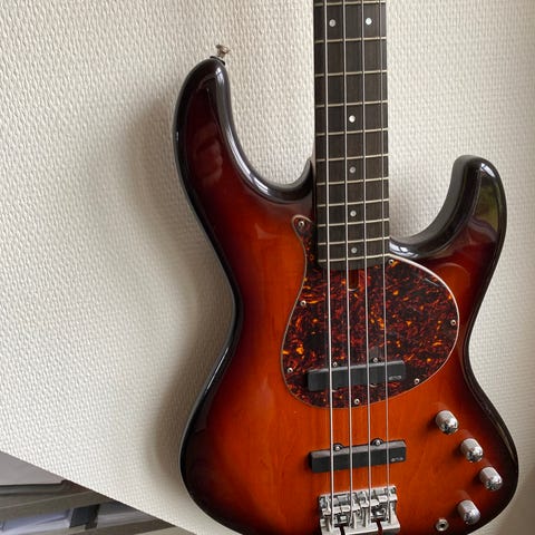 Nordy FJ4 elbas med 4 strenge og natur træfinish. Bassen har to pickups, fire kontrolknapper samt standard bro. Hals og gribebræt er i lyst træ, og hovedet er mærket med Nordly-logo og modelbetegnelsen FJ4. Bagsiden viser bolt-on halsmontering med metalplade og serienummer 162. Velegnet til elbasister, der ønsker en klassisk 4-strenget elbas med naturlook.