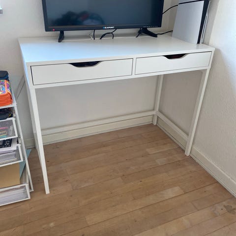 Sælger dette klassiske og populære IKEA skrivebord (model LAGKAPTEN / ALEX) i hvid. Bordet er perfekt til både hjemmekontoret, gaming-shoppen eller børneværelset, da det kombinerer en stor arbejdsflade med masser af opbevaringsplads.