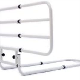 Sengegelænder støttebøjle med remme til montering ved sengekant. Fremstillet i metal med polstret håndtag og fastgørelsesremme, der kan spændes omkring sengerammen for ekstra stabilitet. Egnet som støtte ved ind- og udstigning af seng for personer med behov for ekstra hjælp til balance og forflytning.