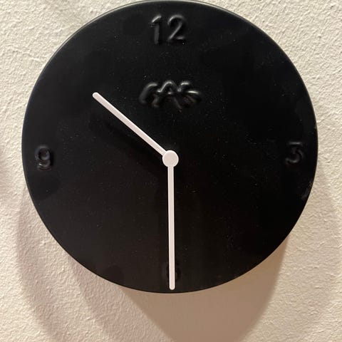 Hvid keramikskive med lyseblå visere. Batteriværk på bagsiden. Går fint og præcist. 30 cm i diameter.