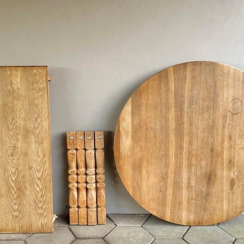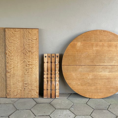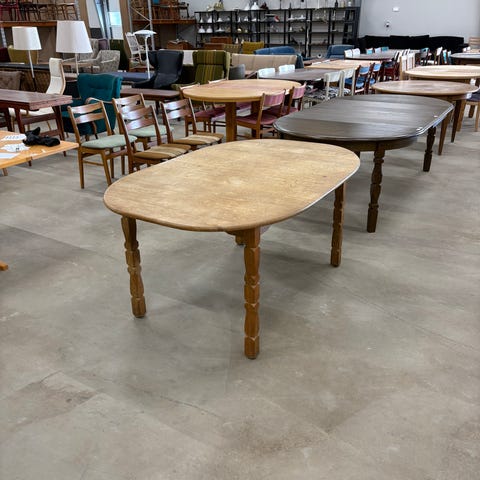 Henning Kjærnulf rundt massiv egetræ spisebord med to tillægsplader