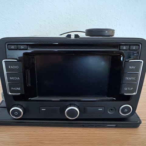 Can Bus Decoder multimedieskærm til bil med tilhørende GPS-modtager og kabelsæt. Kan let installeres i VW, Skoda og Seat. Sættet omfatter en skærmenhed med betjeningsknapper i siden, en Can Bus Decoder-boks samt diverse ledningsnet og stik til tilslutning i bilen. GPS-modtageren er beregnet til navigation, og de medfølgende kabler inkluderer blandt andet RCA-stik til lyd og video. Velegnet som del til bilens multimedie- eller navigationssystem, hvor der kræves Can Bus-integration og ekstern GPS-modtager. Jeg har selv givet 2.000,- for det.