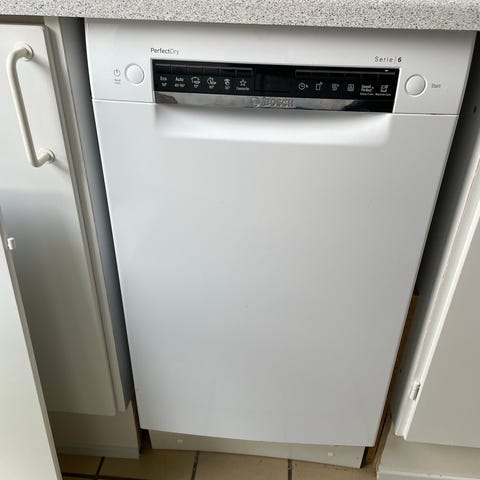 Bosch opvaskemaskine, underbygget model i hvid. Frontbetjent med betjeningspanel øverst på fronten. Egnet til montering under bordplade i køkken. Standardstørrelse til indbygning under køkkenbord. Maskinen er velegnet til daglig opvask af service, bestik og køkkenredskaber i husstande, hvor der ønskes en fast installeret opvaskeløsning.
