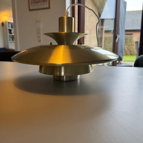 Klassisk messing-pendel i flot stand. Ingen buler eller slag. Diameter 50 cm. Højde ca. 26 cm.