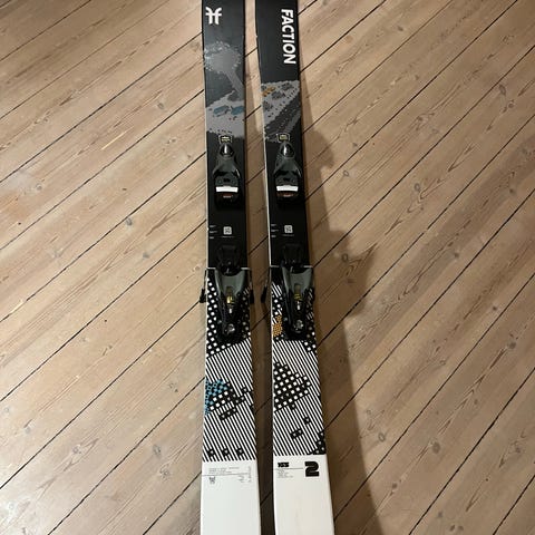 Faction ski i sort med lyserøde detaljer og monterede bindinger. Alpinski egnet til brug på pister. Design med twin tip-lignende form og bredde, der kan anvendes til både almindelig alpint skiløb og mere legende kørsel.
