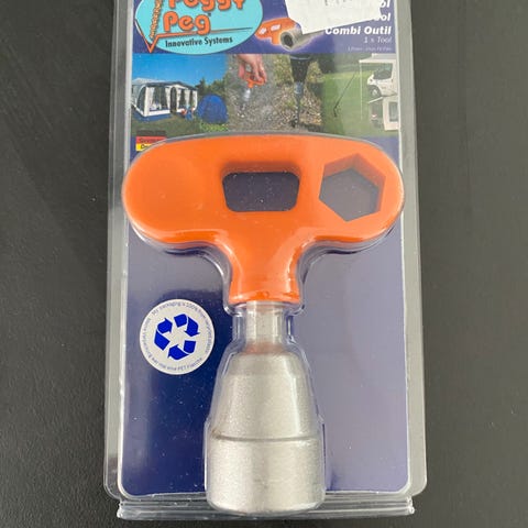 Pose med både alu- og plast- skruepløkker i forskellige størrelser samt 3 ankerplader til fortelt og diverse kroge. Lidt brugt, halv pris
