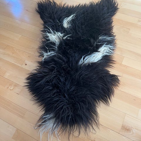 Brugt meget lidt. Lækkert langhåret lammeskind i bedste kvalitet. Købt på Island.