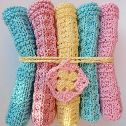 Hjemmestrikket karklude, vaskeklude, værtindegave.