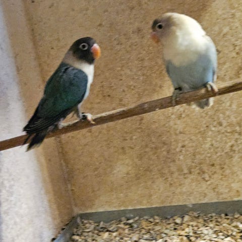 2 Stk. Rosenhovedet Dværgpapegøjer i gule farver. Unger der lige er begyndt at spise selv. Pris pr. stk.