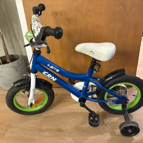 Børnecykel 12" lyserød med støttehjul og kurv